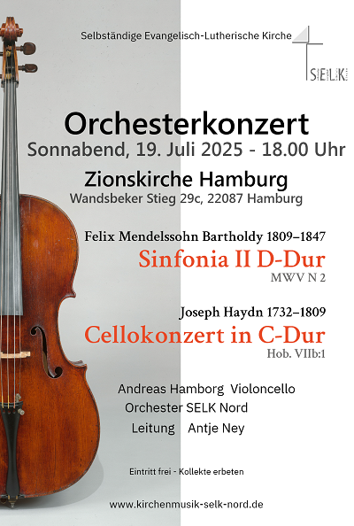 Das Orchester SELK Nord lädt zu einem besonderen Konzert am Sonnabend, 19.07.2025 um 18.00 Uhr in die Zionskirche Hamburg, Wandsbeker Stieg 29c ein.