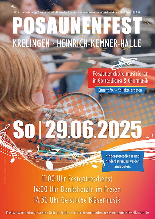 Wir laden Sie herzlich zum diesjährigen Posaunenfest der SELK Nord in die Heinrich-Kemner-Halle, Krelingen, ein.